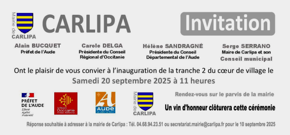 La population est cordialement invitée à l'inauguration de la tranche 2 du Cœur de village qui aura lieu le 20 septembre 2025 à 11