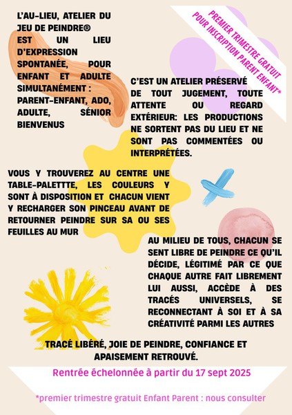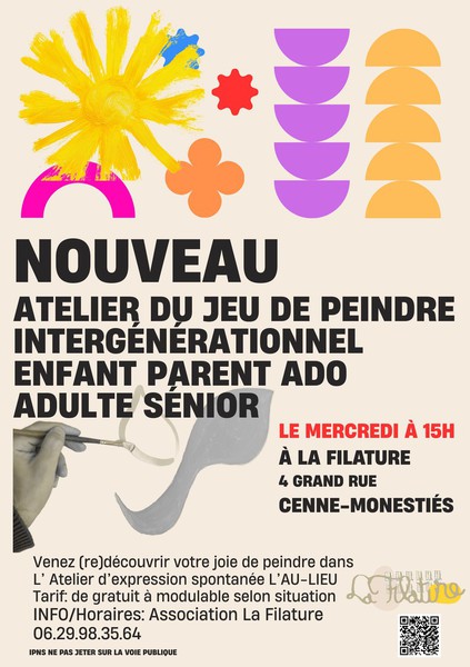 Venez découvrir votre joie de peindre dans l'Atelier d'expression spontanée L'AU-LIEU les mercredis à 15 heures à Cenne-Monestiés.