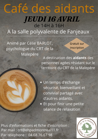 Plus d'informations et fiche d'inscription par téléphone au 04.68.76.67.98 ou par mail : crt@ehpadmontreal11.fr