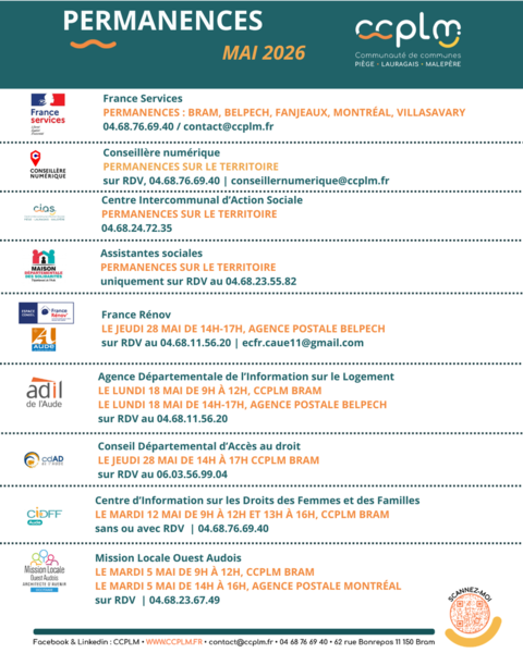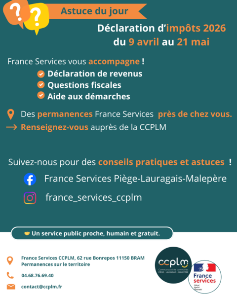 Vous trouverez ci-dessous, la lettre d’information France Services Piège Lauragais Malepère du second trimestre 2026, ainsi que les prochaines permanences.