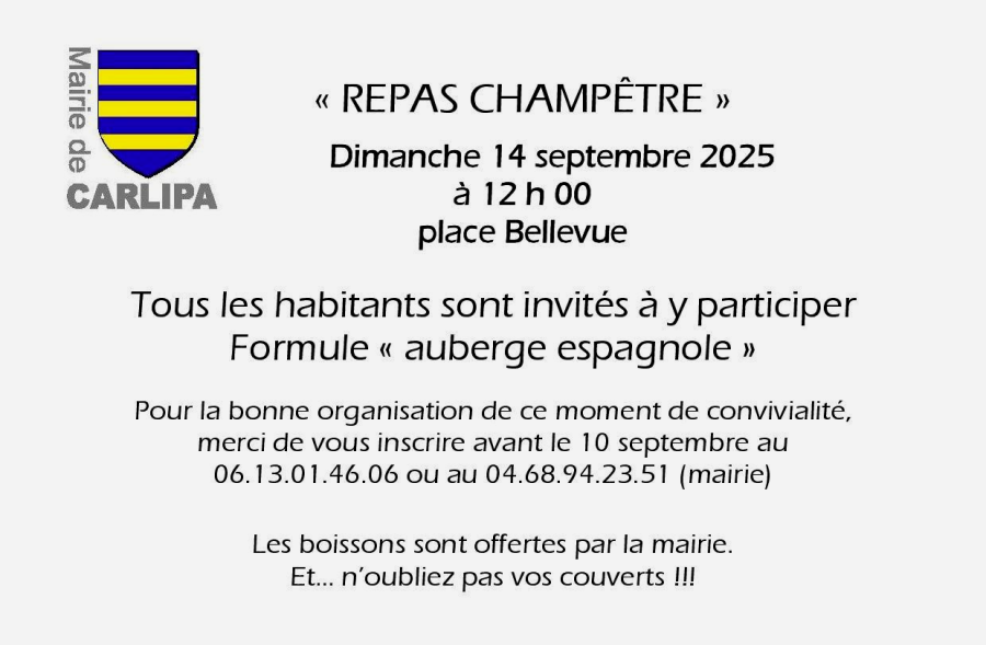 Tous les habitants de la commune sont invités à participer au repas champêtre du